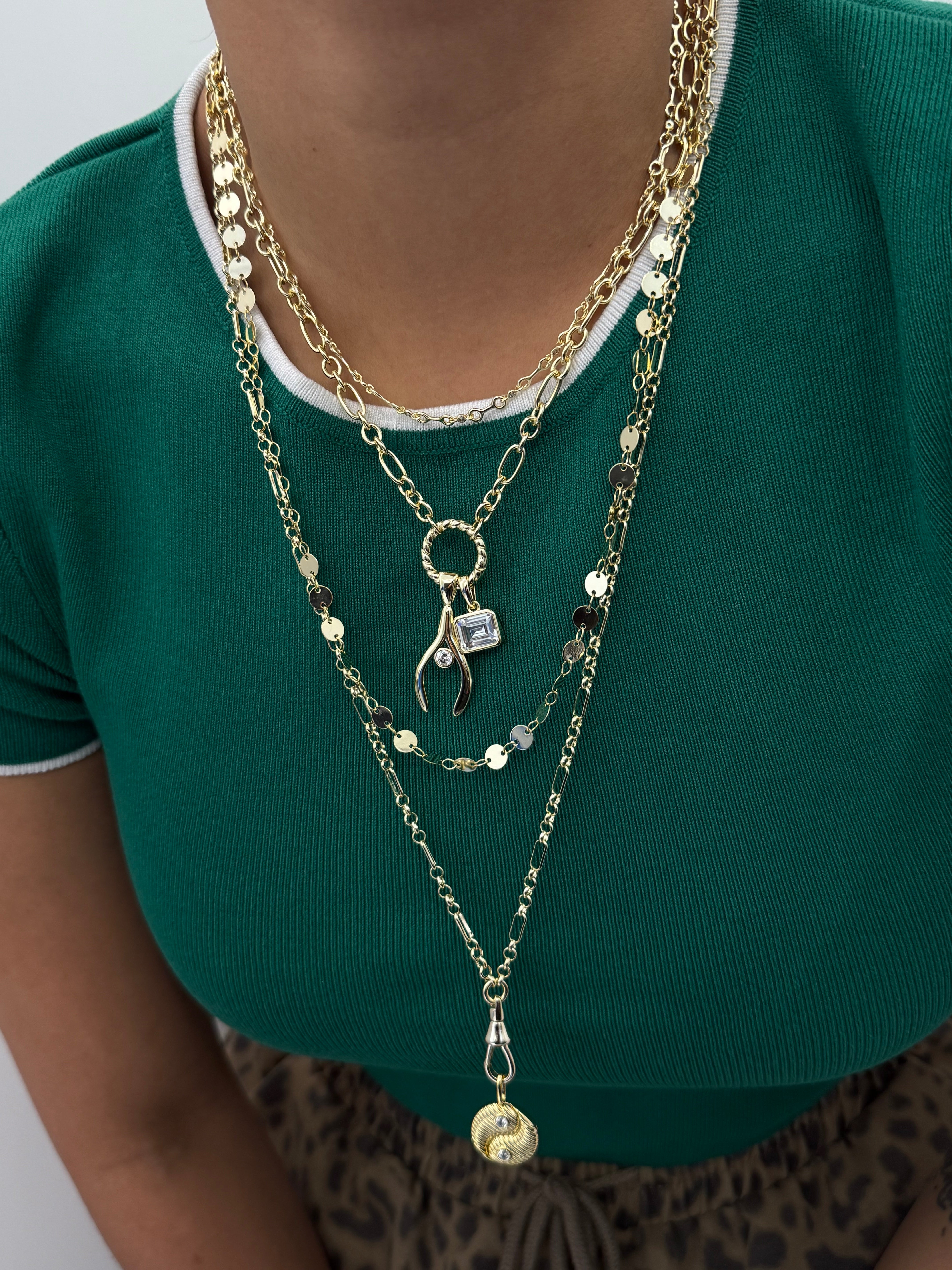 A sculptural gold link necklace inspired by soft bone-shaped links, finished with subtle sparkle throughout. Modern, refined, and effortlessly wearable—this is an everyday essential with a twist.