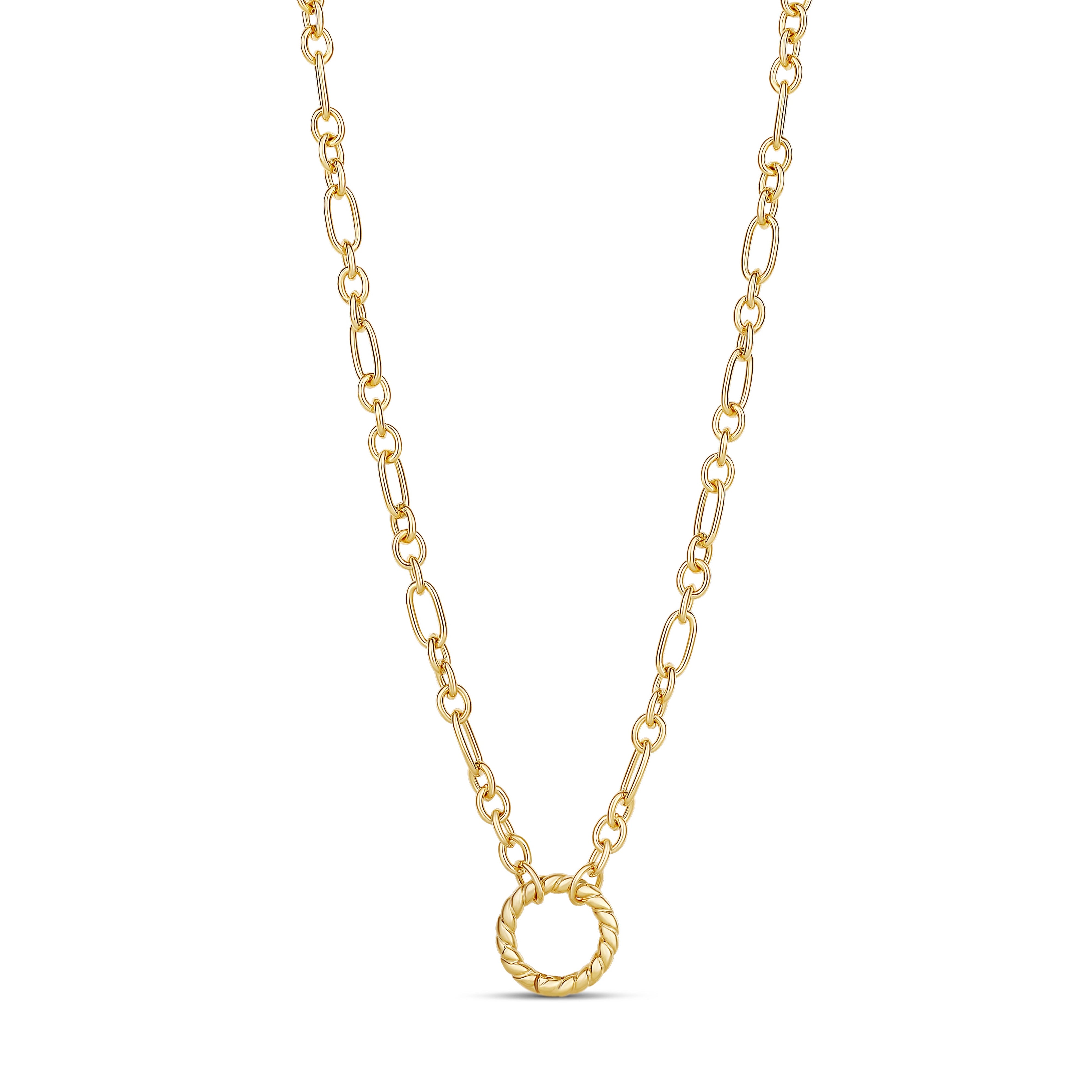 Effortlessly modern with a timeless touch, the Twisted Push Clasp Link Necklace a polished gold paperclip-style chain finished with a sculpted twisted circle pendant. The textured ring adds subtle dimension and movement, making it the perfect focal point for everyday wear. Chic worn solo or layered with your favorite chains and charms, this necklace is a versatile essential designed to elevate any look with understated elegance.