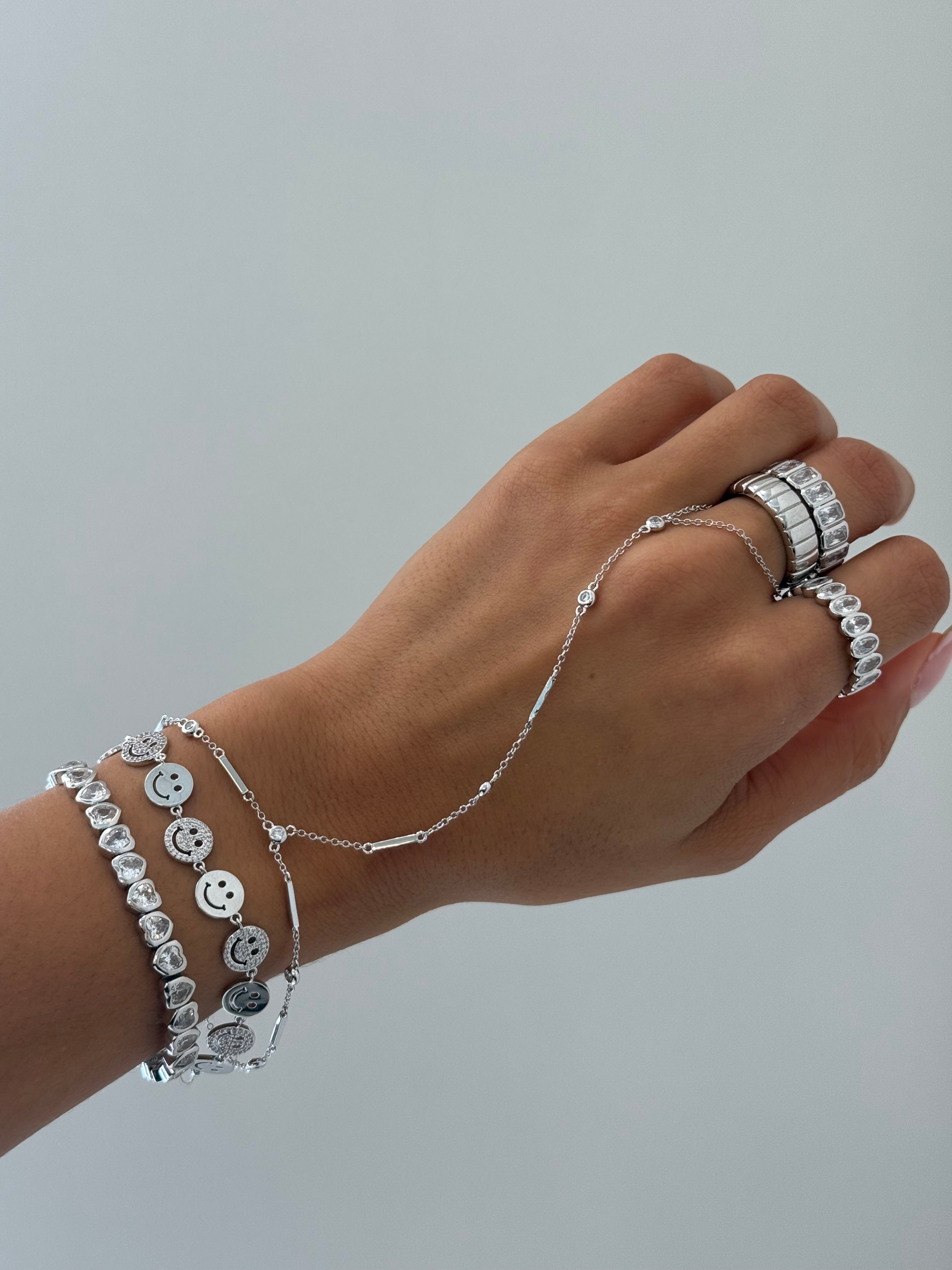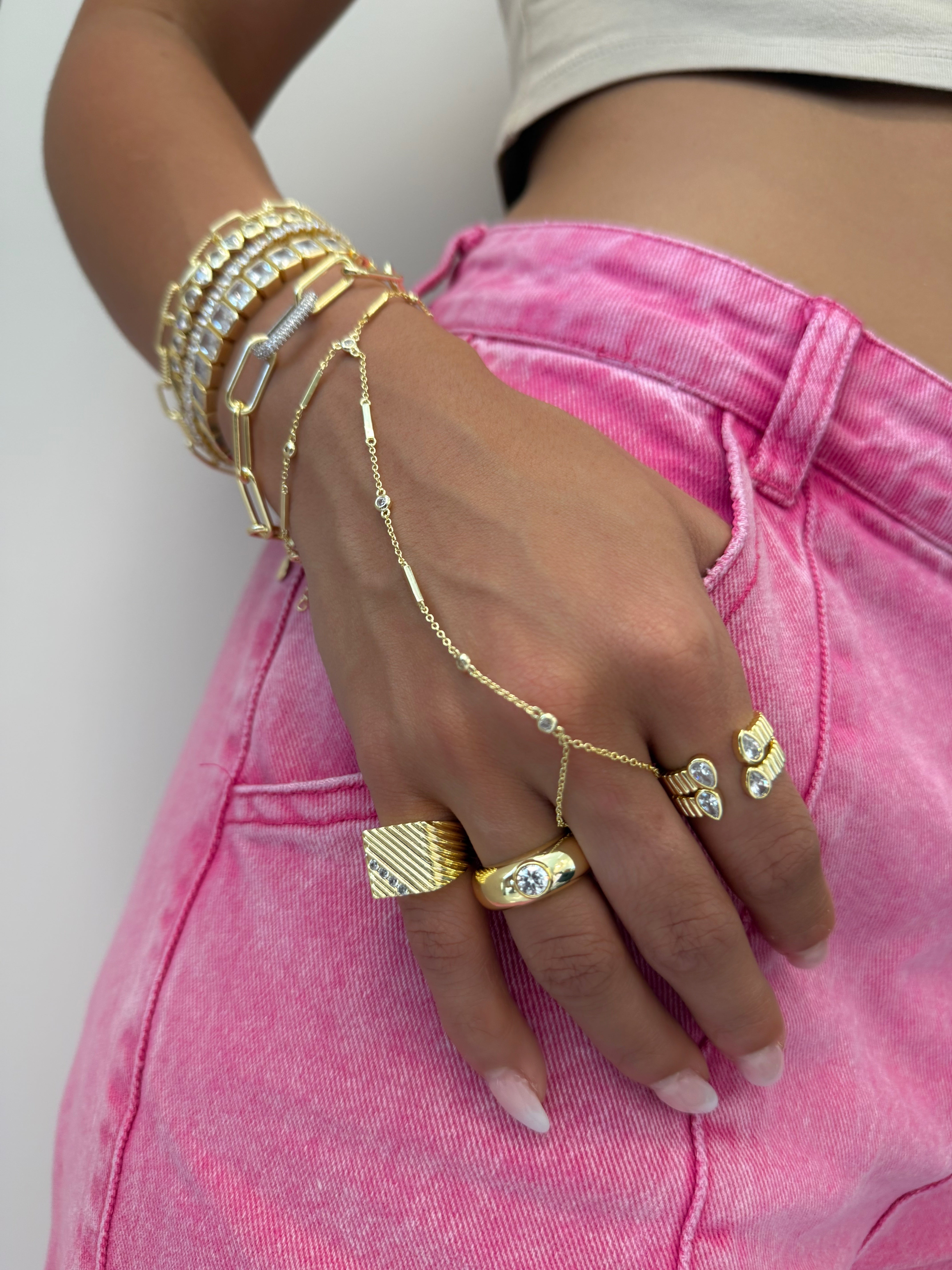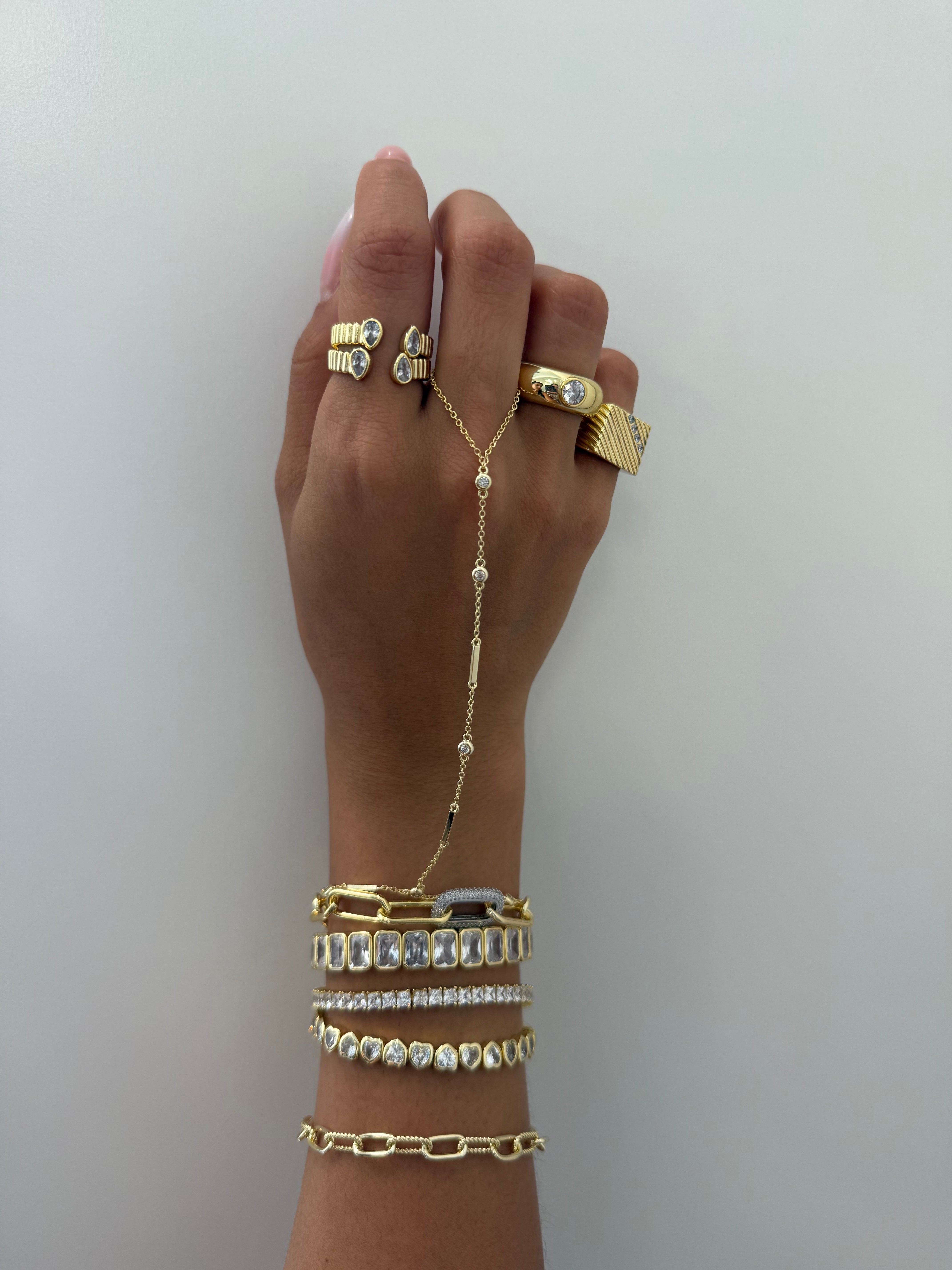 DBY Bar hand chain creates a stunning and delicate layered look for any occasion. Layer it with rings and other bracelets and you get an elaborate look that is guaranteed to sparkle and get all the compliments.