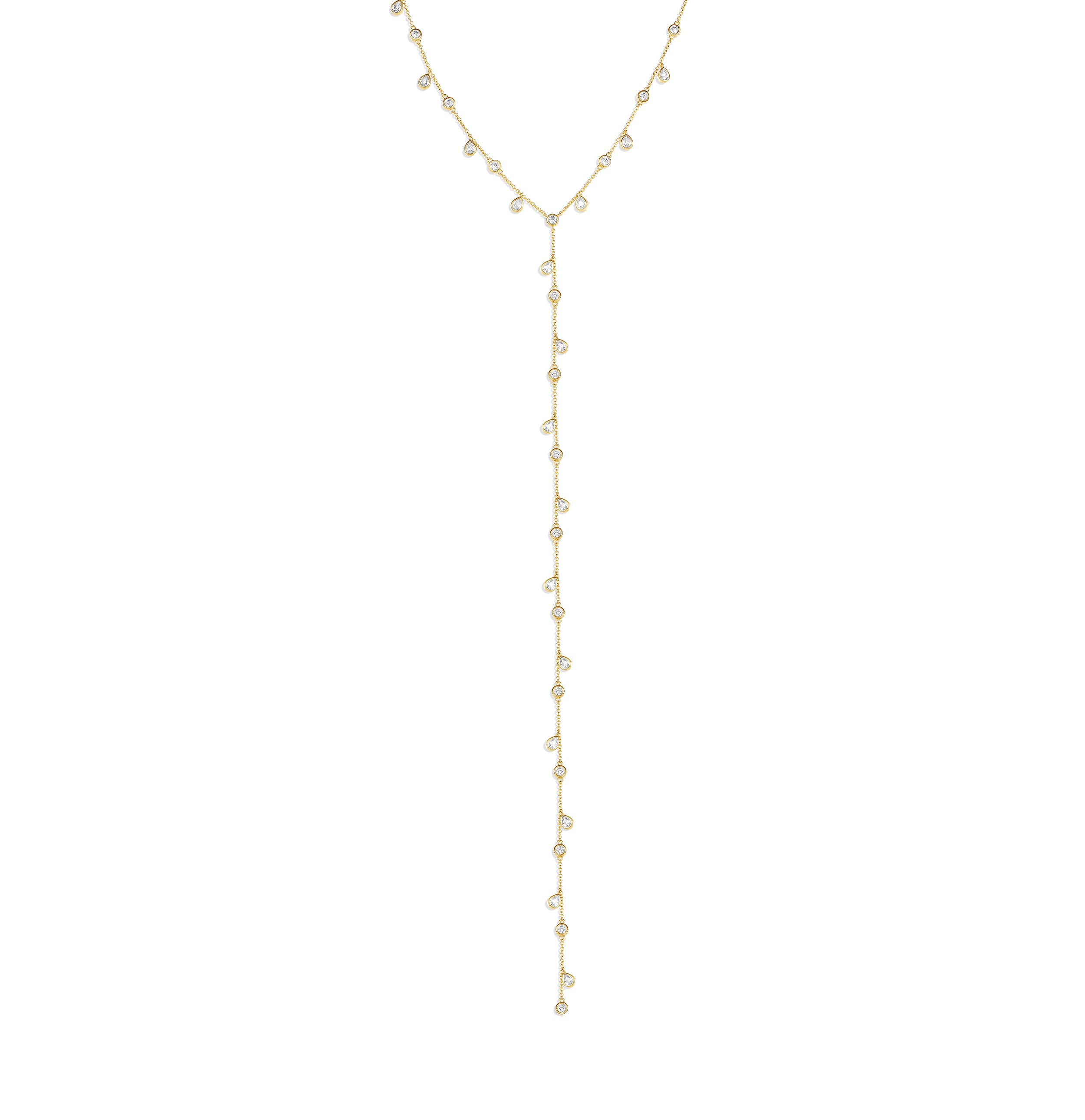 A delicate Y-lariat necklace featuring shimmering bezel-set stones that cascade down the neckline for the prettiest glow. Designed to elevate any outfit instantly—this piece is effortless on its own and stunning layered with your favorite chains.