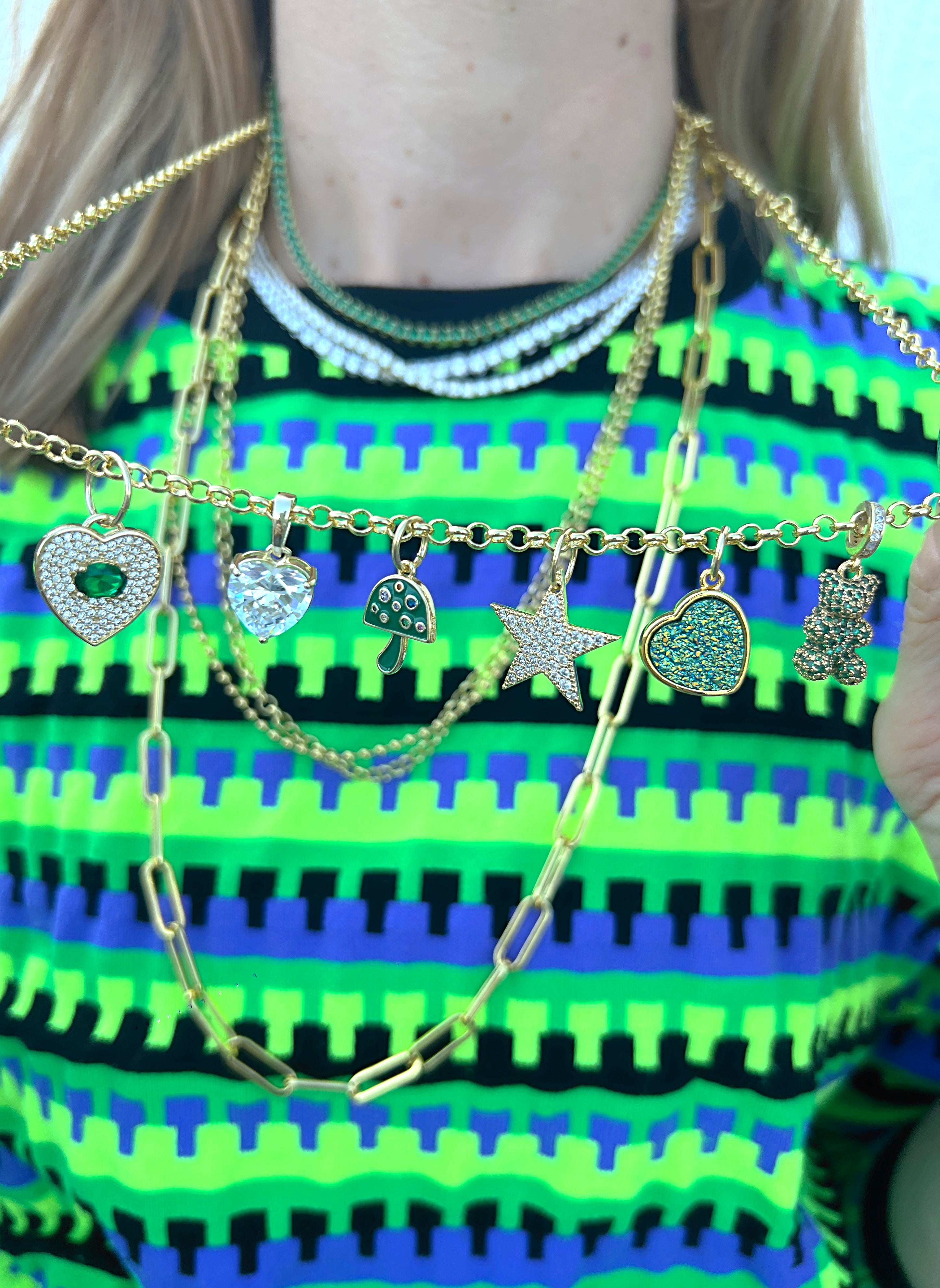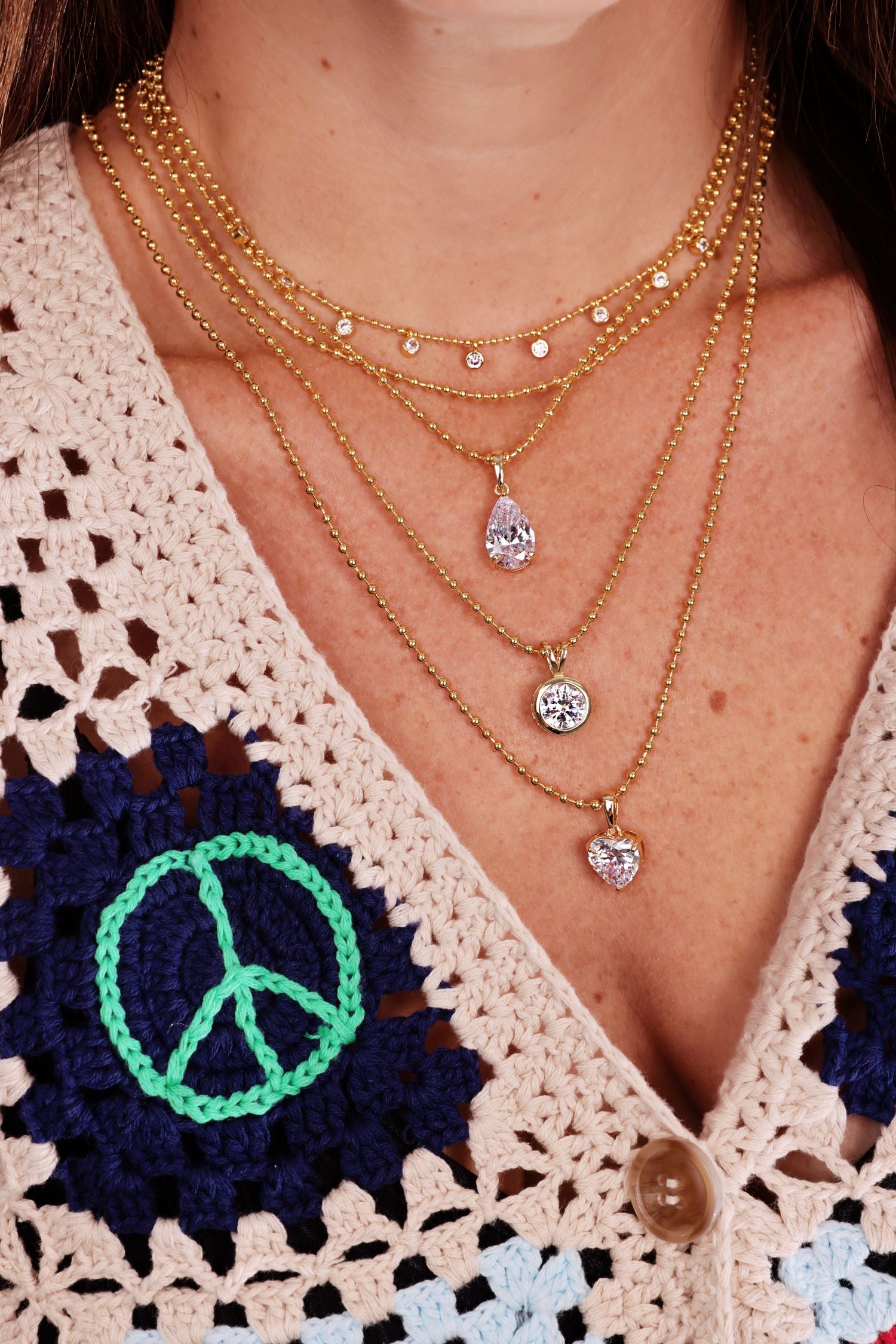 The most sparkle any women can ask in our Diamond Heart Charm, add the dazzling pear shape cubic zirconia to any of your chains for that perfect spark