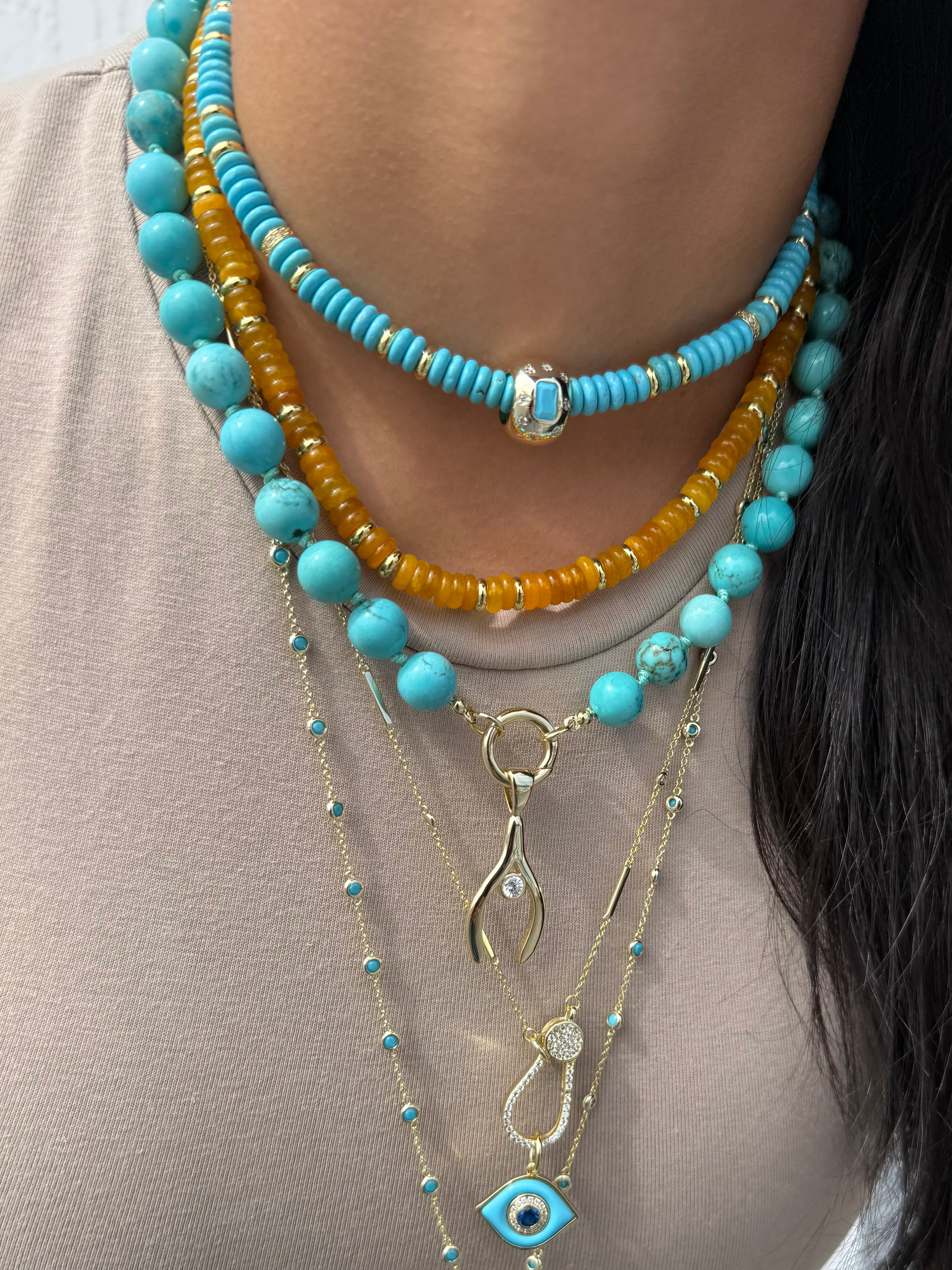 Bright, bold, and effortlessly cool—this necklace brings sunshine energy to your everyday look. Made with rich mustard-toned beads accented by polished 18K gold-plated spacers, it’s the perfect balance of playful and elevated.