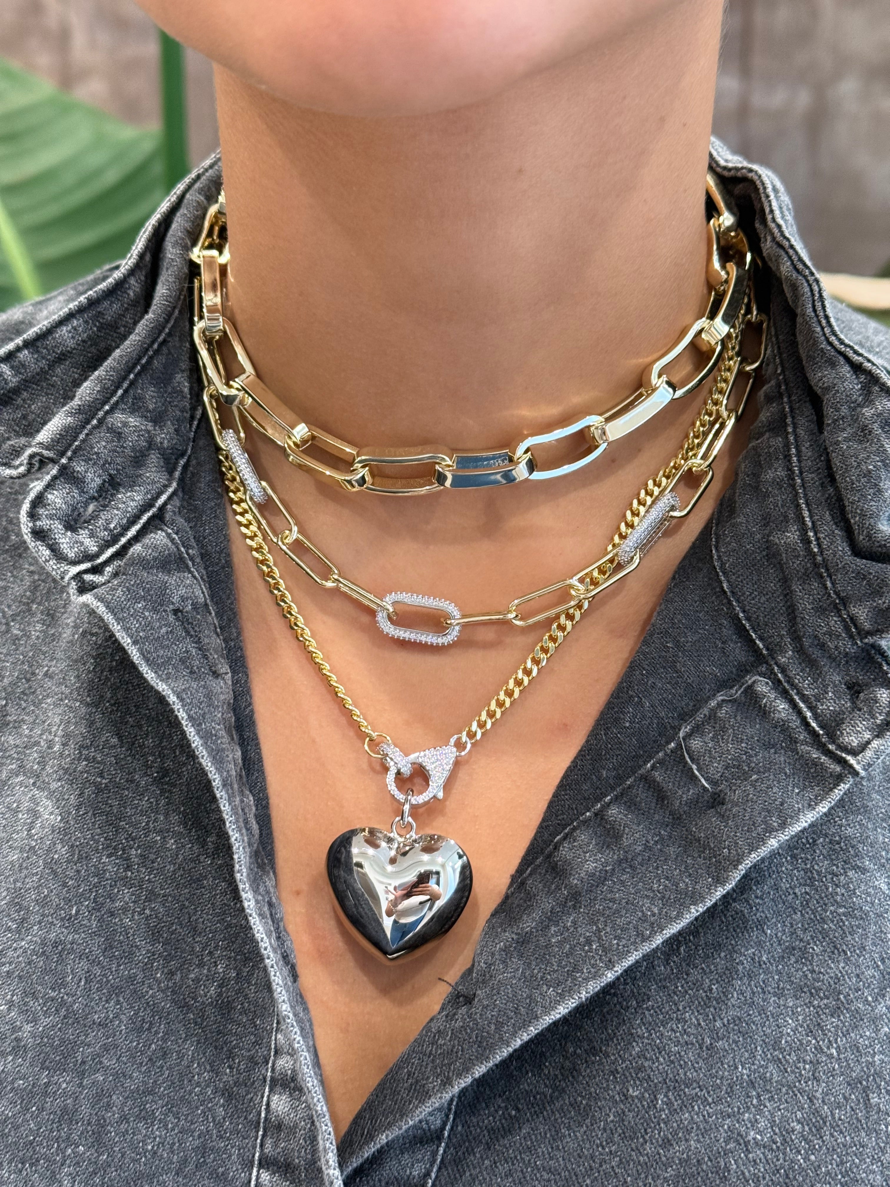 Make a statement with this chunky gold chain, finished with a crystal-encrusted lock clasp that adds just the right amount of edge and sparkle. Whether worn solo or layered, it’s your new go-to for turning everyday outfits into standout looks.