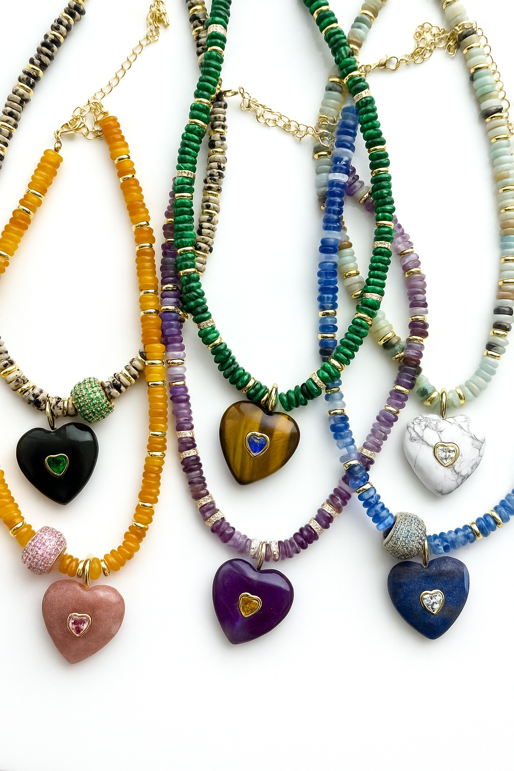 Fall in love with ourHeart Gem Charm, crafted from real stones and detailed with a delicate heart-shaped crystal framed in 18K gold plating. A sweet yet elegant piece that adds a feminine pop of color to any chain or bracelet. Perfect for layering or gifting love-inspired looks that shine every day.