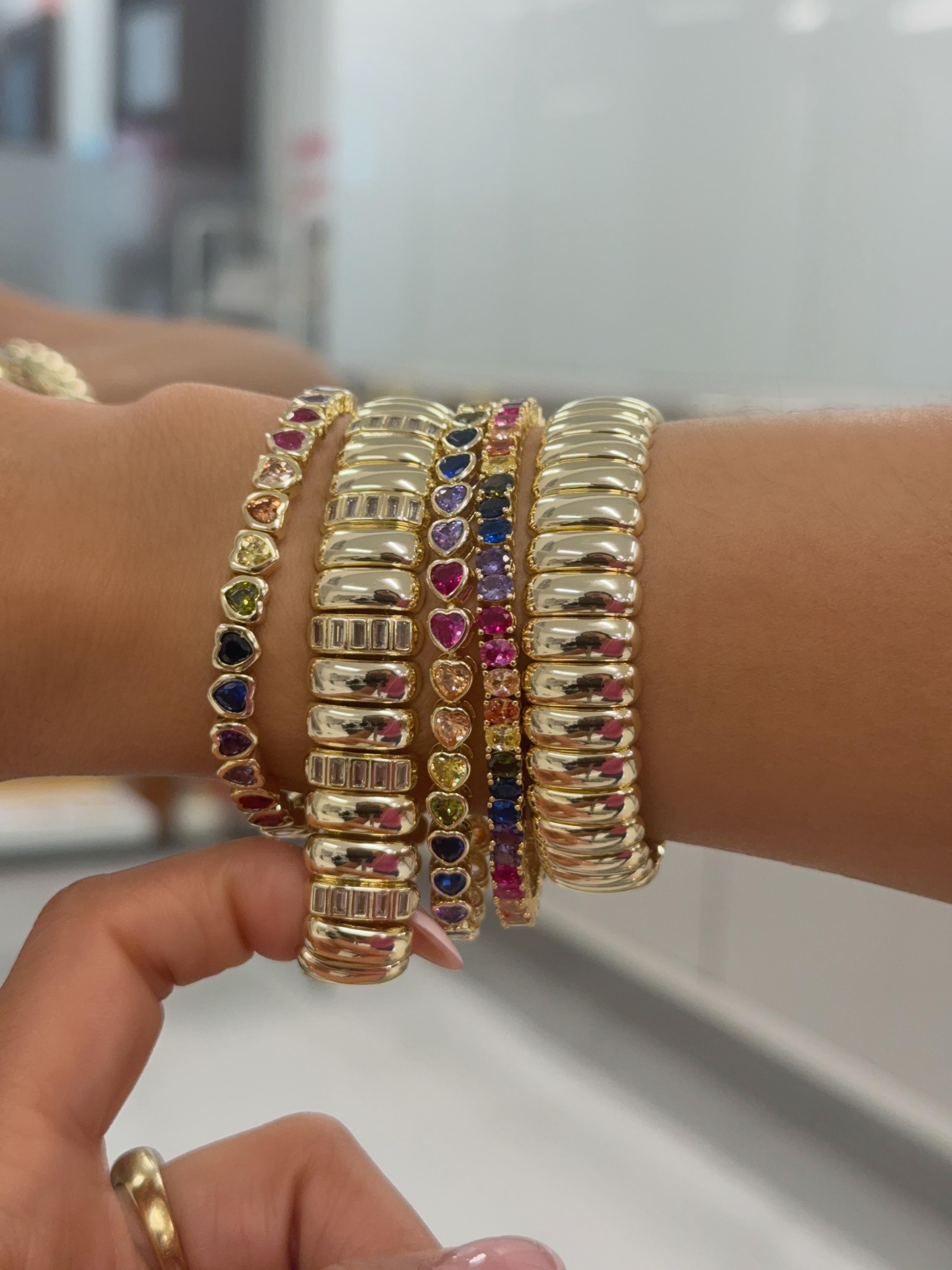 The Luxe Tube Baguette Stretchy Bracelet is a bold, high-shine statement piece with a smooth, sculpted look that feels instantly elevated. Designed with a comfortable stretch fit, it slips on easily and stacks perfectly—giving effortless expensive energy from every angle.